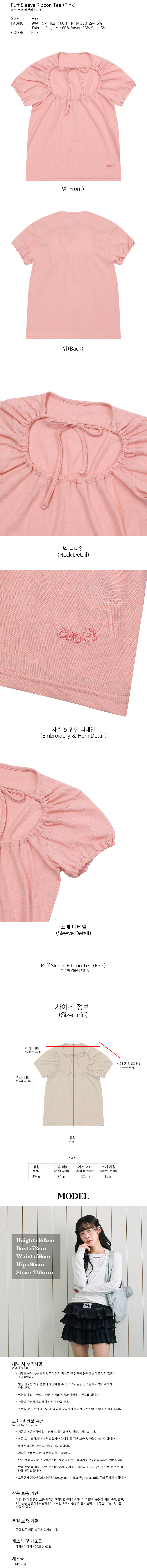 퍼프 소매 리본티 핑크