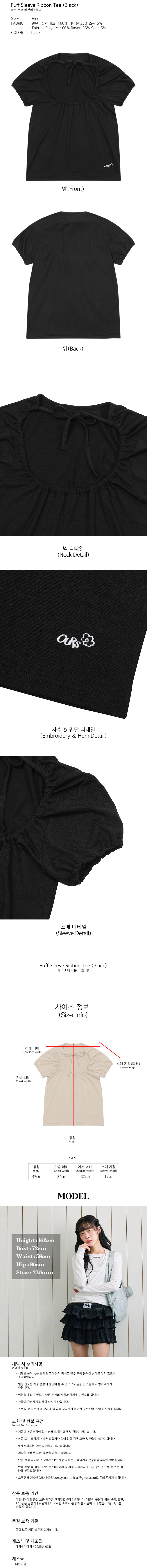 퍼프 소매 리본티 블랙