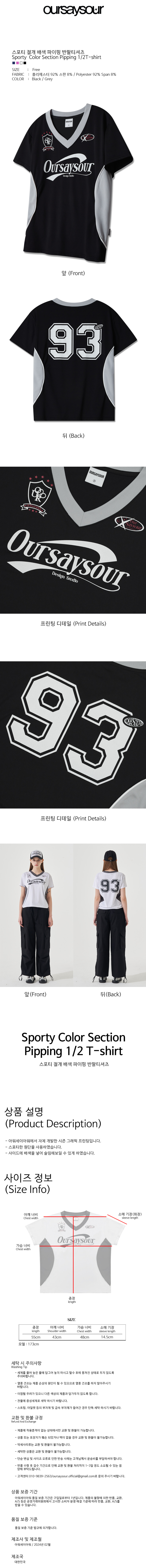 스포티 절개 배색 파이핑 반팔티셔츠 블랙/그레이