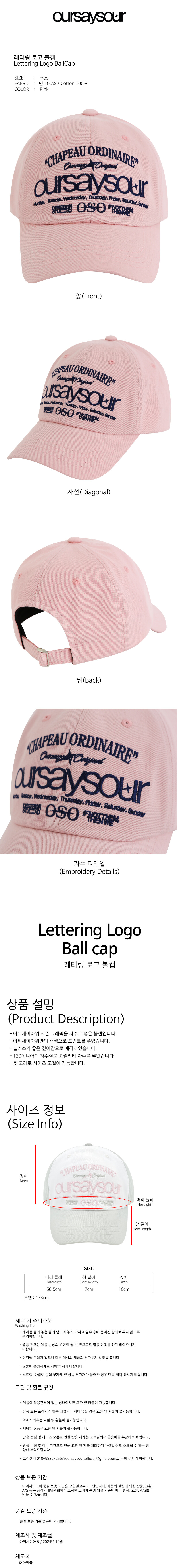 레터링 로고 볼캡 핑크