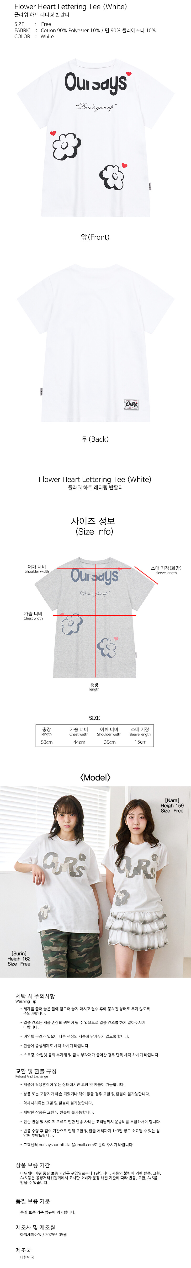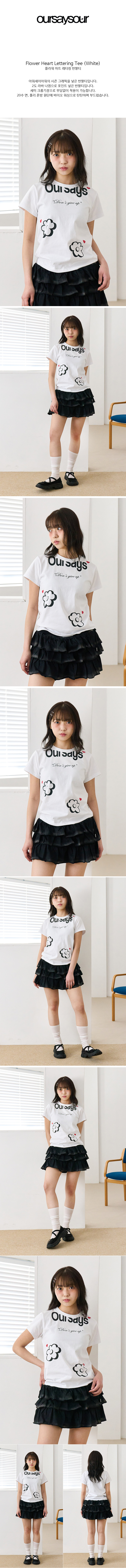 플라워 하트 레터링 반팔티 화이트