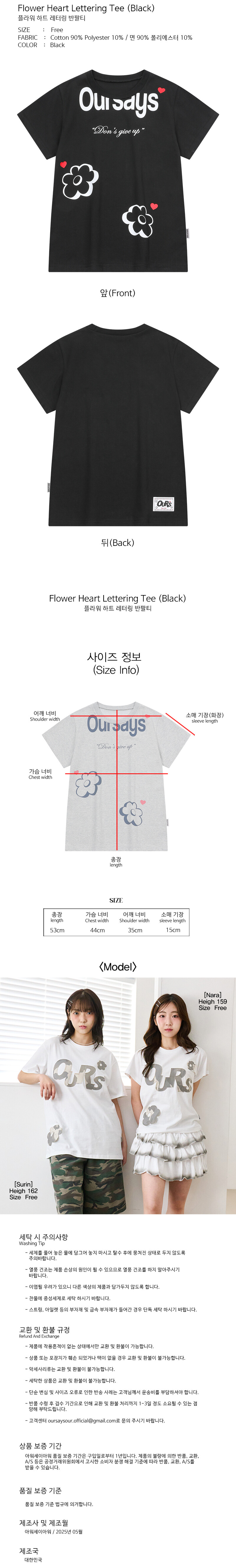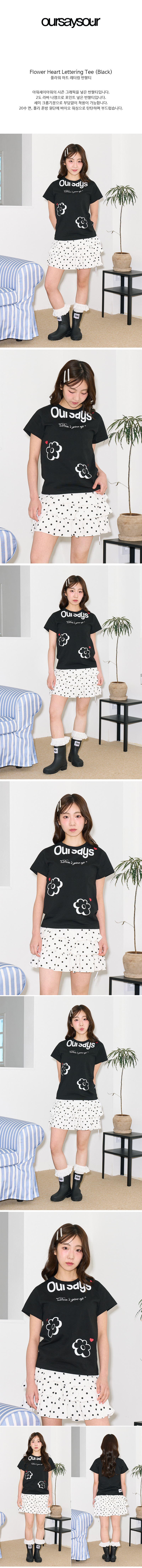 플라워 하트 레터링 반팔티 블랙